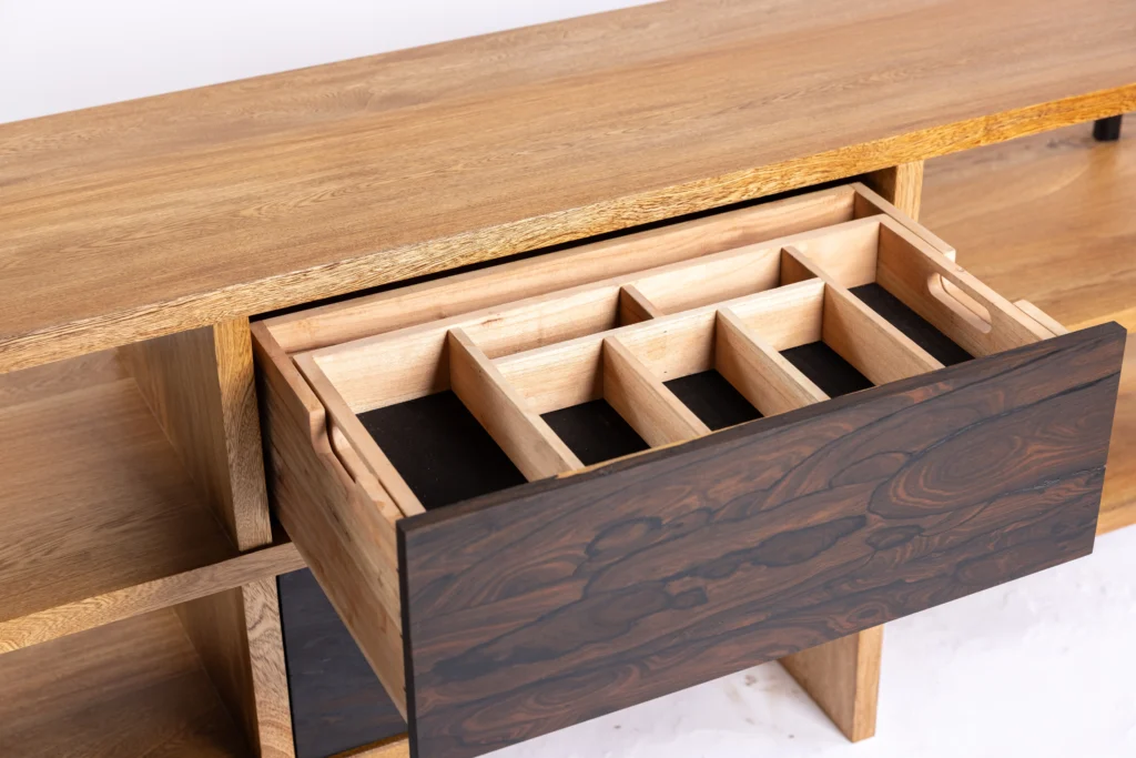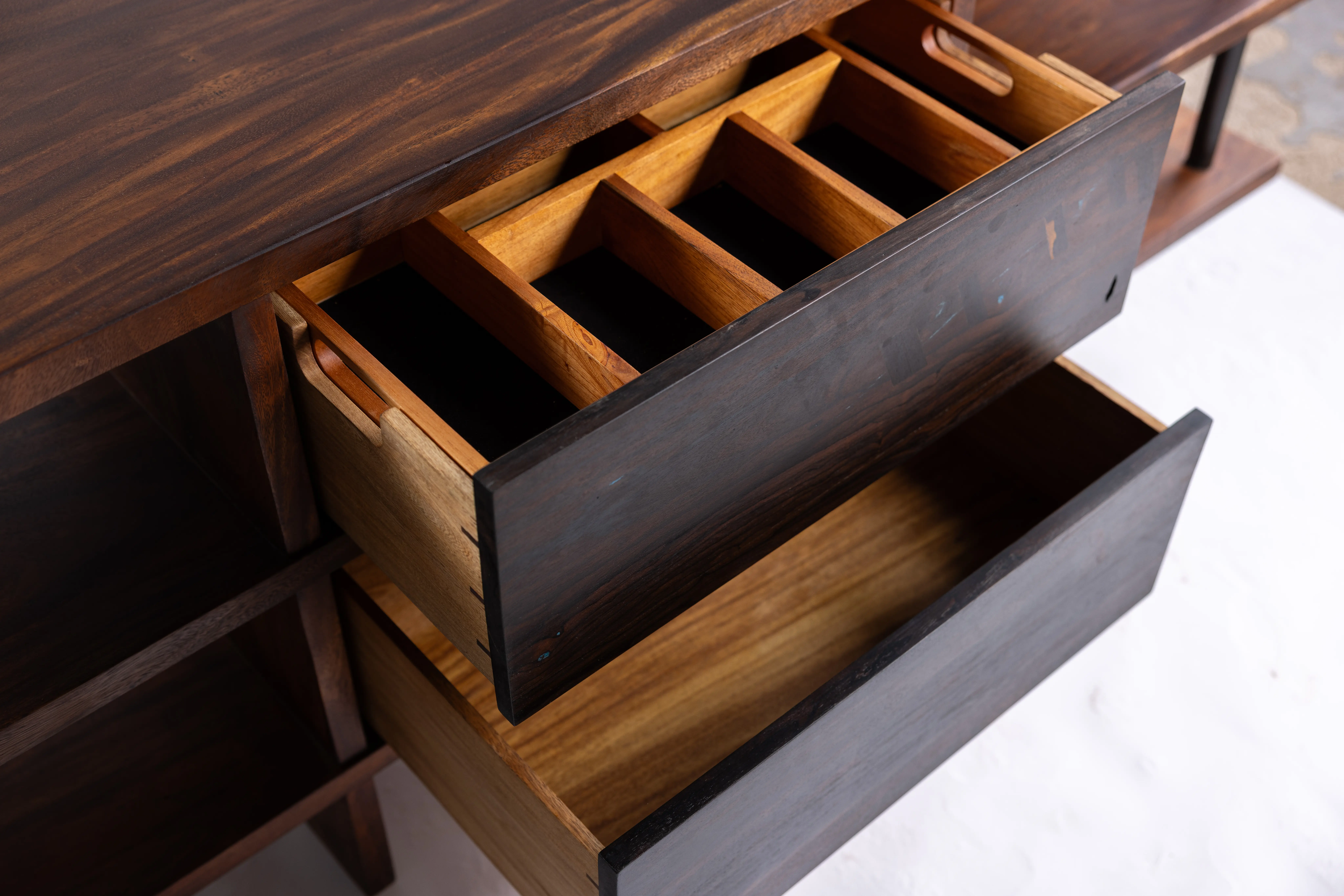 Nuestras credenzas son piezas de autor. Las diseñamos y construimos internamente con maderas tropicales seleccionadas y buscando formas limpias.